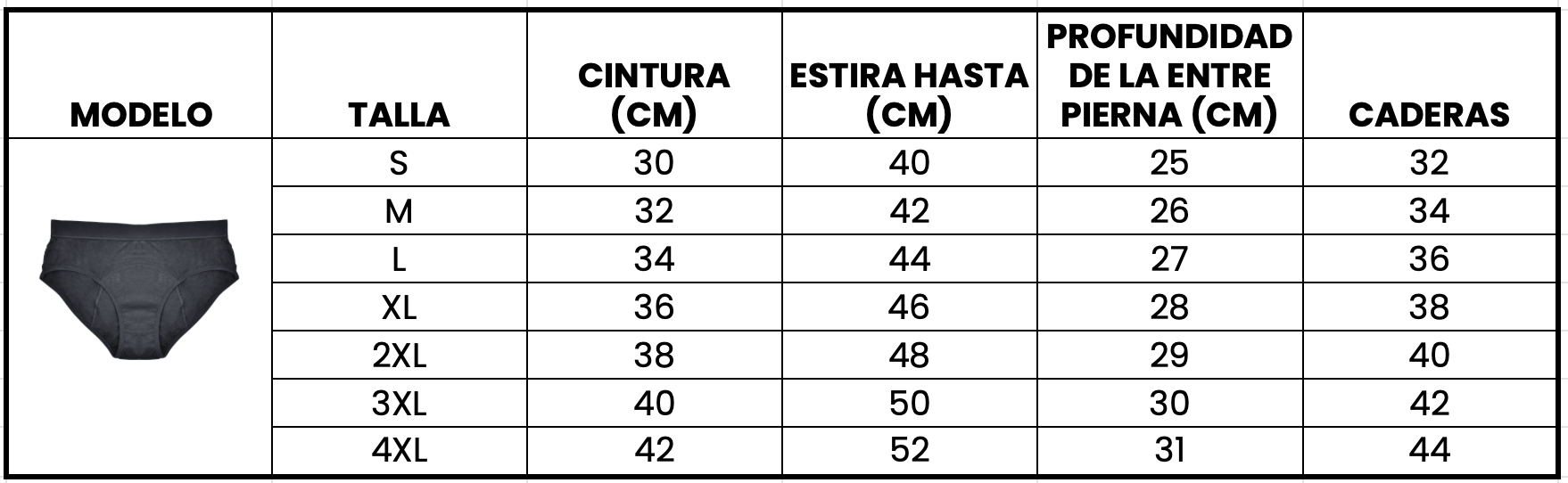 - Tela: 95% Bambú, 5% Spandex. Entrepierna: 100% algodón. Fibra impermeable 100% transpirable.